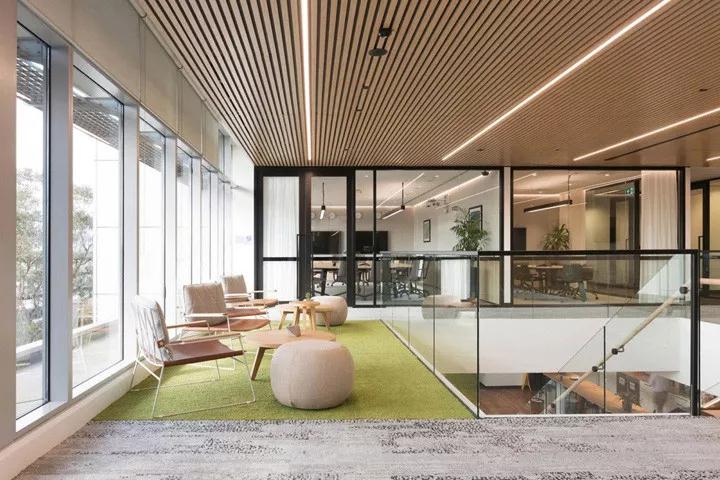2020年深圳裝修公司設計風格案例:環保、簡約明快、中央樓梯、苔蘚墻、垂直花園、自然元素、北歐風、木色、肌理地毯,裝修公司設計旨在創建一個現代、開放、包容和連接的工作空間,去映射公司的價值觀和品牌文化。辦公室共跨越兩個樓層,包含了協作區、休閑區和私人會議室裝修等功能空間,所有的裝修設計和建造都符合公司的“愿望清單”。