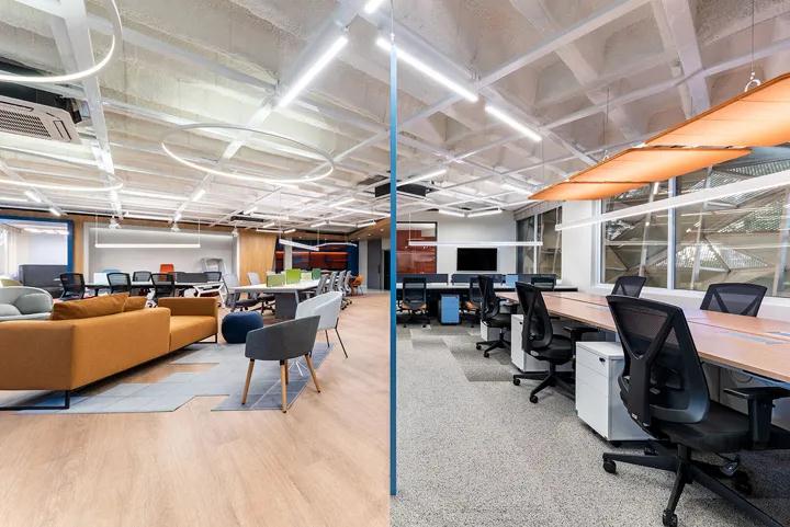 遵循這種靈活的概念,整個空間的地板采用高架地板的方法。只有廁所,茶室和總統辦公室是固定的。