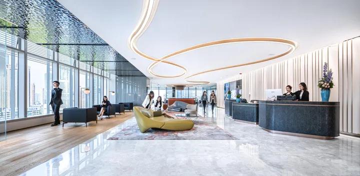 此外,為新辦公樓規(guī)劃和設(shè)計(jì)了一個(gè)多功能空間,可用于聚會(huì)和聯(lián)賽建設(shè),公益基金會(huì)展覽,集思廣益,舞蹈室,團(tuán)體運(yùn)動(dòng)室,瑜伽室等,從而員工可以輕松享受高質(zhì)量的體驗(yàn),緩解疲勞,保持工作健康并改善情感聯(lián)系和幸福指數(shù)。鑒于公司不斷增長(zhǎng)的業(yè)務(wù)需求和社交活動(dòng),該空間創(chuàng)造性地引入了一個(gè)酒吧區(qū),該酒吧區(qū)擁有舉辦公司外事和內(nèi)部活動(dòng)的絕佳景觀。標(biāo)志墻上方的藝術(shù)裝置燈具就像“龍游”,因此光滑的天花燈帶將延續(xù)這里前部的靈巧氛圍;酒吧的上方圓圈設(shè)計(jì)為鮮橙色,形成了一個(gè)充滿活力的社交中心,增進(jìn)了中國(guó)與客戶之間的聯(lián)系,并提供了美妙的客戶體驗(yàn)。空間的平面布局充分利用了無(wú)與倫比的城市景觀,使員工和游客可以享受心情并緩解動(dòng)態(tài)景觀帶來(lái)的壓力。轉(zhuǎn)角會(huì)議室的兩側(cè)都有窗戶,可將深圳地標(biāo)性建筑景觀盡收眼底。會(huì)議室配有智能會(huì)議系統(tǒng),可以方便,高效地支持不同的會(huì)議場(chǎng)景和要求。會(huì)議室的膠卷比傳統(tǒng)膠卷低15厘米,以確保會(huì)議室的私密性,并為游客提供直接面對(duì)陸家嘴的景觀走廊。培訓(xùn)中心擁有充足的自然采光,可輕松布置各種布局,并配有可移動(dòng)的隔板,以提高空間利用率,并為所有員工會(huì)議,教學(xué)和培訓(xùn),主題演講,模擬法庭等創(chuàng)建靈活靈活的多個(gè)場(chǎng)景。為了在培訓(xùn)過程中滿足用戶的臨時(shí)通話需求,在附近規(guī)劃了兩個(gè)具有隔音效果的電話亭,從使用細(xì)節(jié)上改善空間的功能性,營(yíng)造以人為本的全方位環(huán)境。